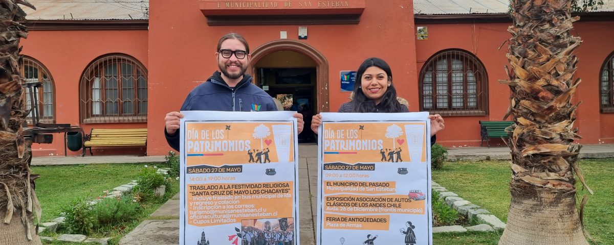 Durante la tarde del sábado, desde las 14:00 a 19:00 horas, se realizará el traslado, desde el frontis del municipio, para participar en la Festividad Religiosa «Santa Cruz de Mayo Los Chacayes», que incluirá la movilización y una colación”. Los interesados deberán inscribirse a los correos: turismo@munisanesteban.cl u oficinacultura@munisanesteban.cl