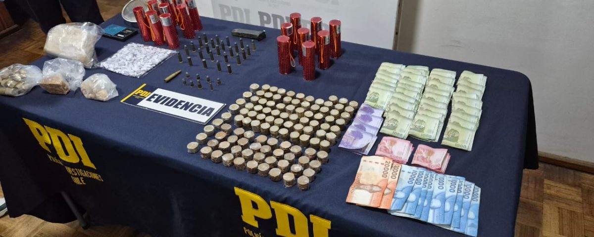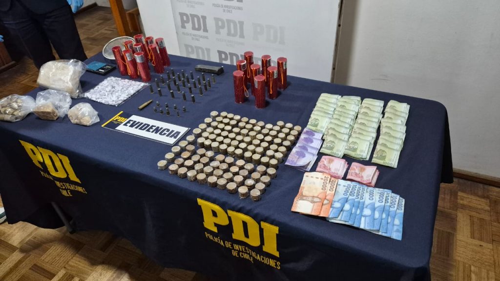 En el marco de las diligencias investigativas, los detectives se trasladaron hasta un domicilio ubicado en el pasaje San Luis de la comuna de Viña del Mar, donde incautaron munición de diversos calibres, un cargador de pistola, 1.115 gramos de cocaína base y dinero en efectivo.
