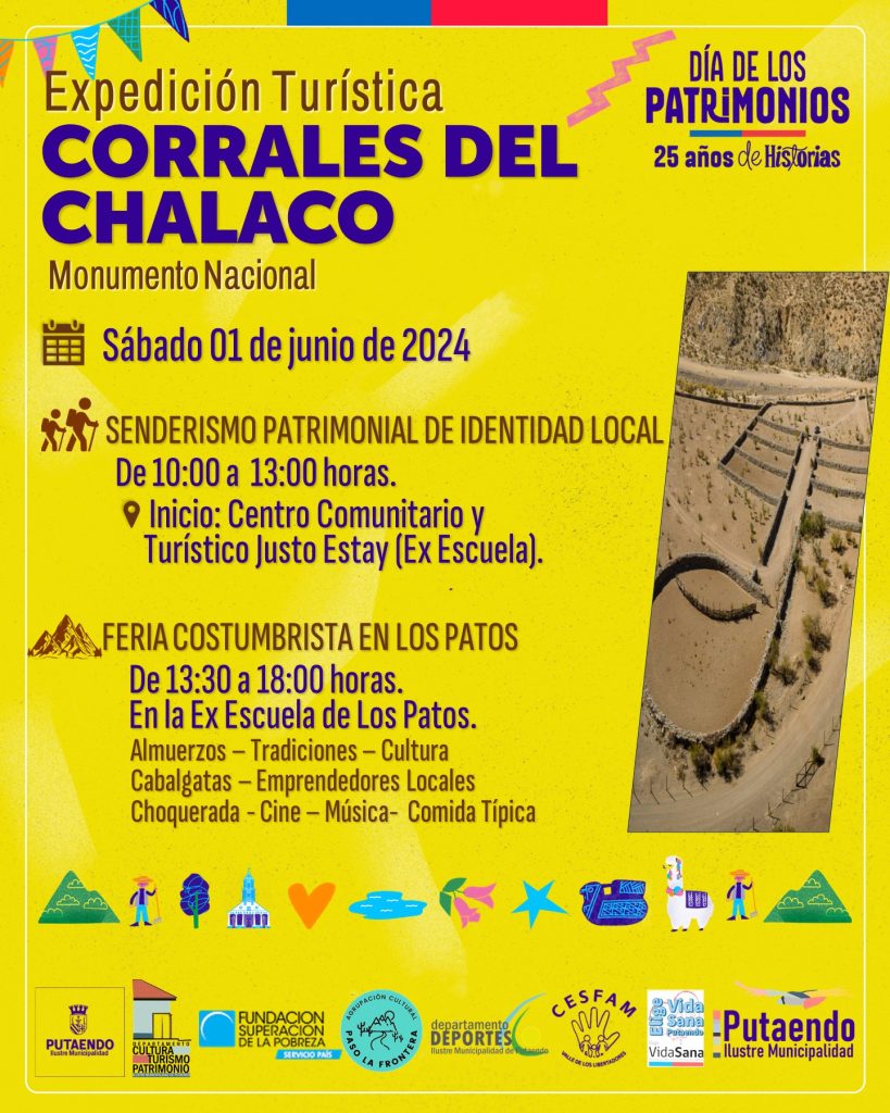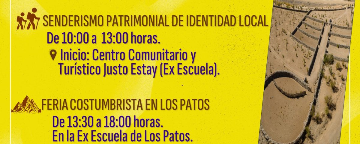 Las actividades municipales comenzarán la mañana del sábado 1 de junio, a contar de las 10:00 horas, cuando se inicie una jornada de senderismo hacia “Los Corrales del Chalaco” (Monumento Histórico Nacional) y una Feria Costumbrista en la Ex Escuela de Los Patos.